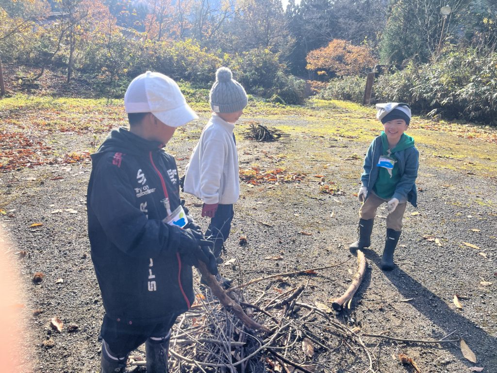 キャンプ場へ着いたら、グルーピングをしてから焚き火の準備をしました。