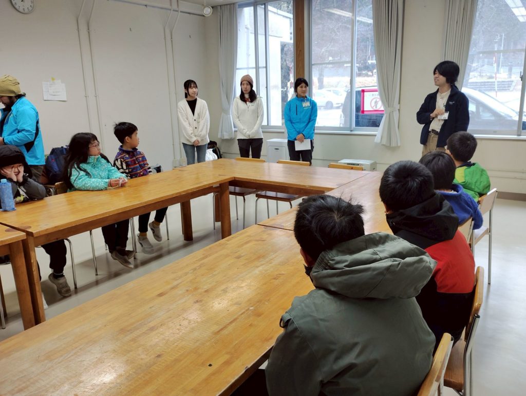 「昨日冬休み始まったばっかり」「雪遊びしに来た!」と、今年も各地から電車などを乗り継ぎ、参加者の子どもたちが利賀へ集まりました。雨の中だったので、1日センター館内での活動となりました。