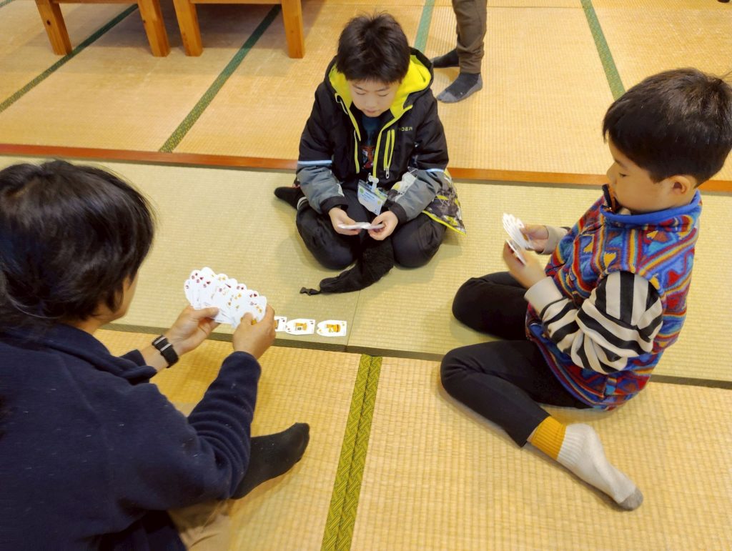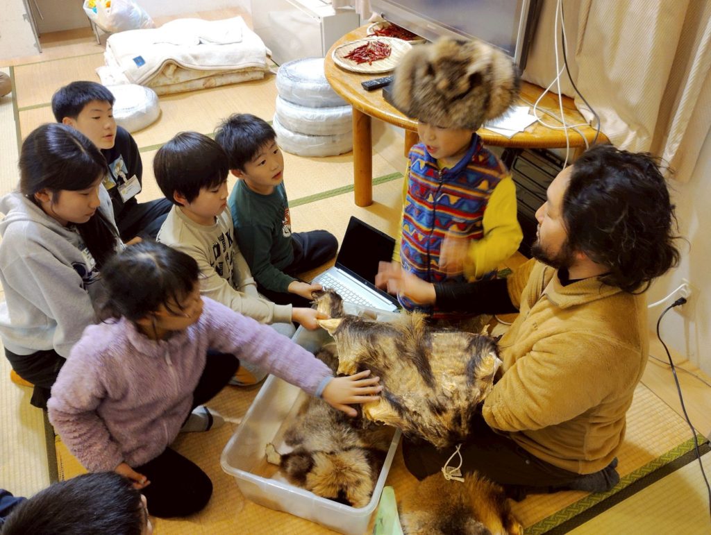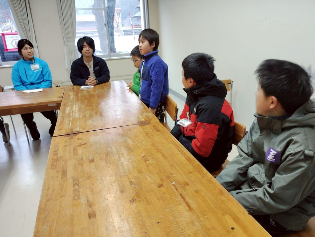 歯を磨き、日記を書いたらミーティング。4日間の予定や布団の敷き方を確認したほか、利賀村について、雪以外の魅力も紹介してもらいました!利賀の動物の毛皮に触れたり、「初午」という行事の映像を見たりして、興味津々の子どもたちでした。