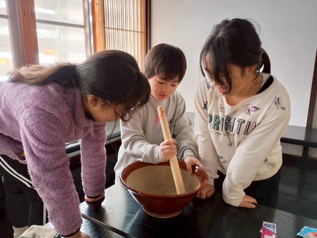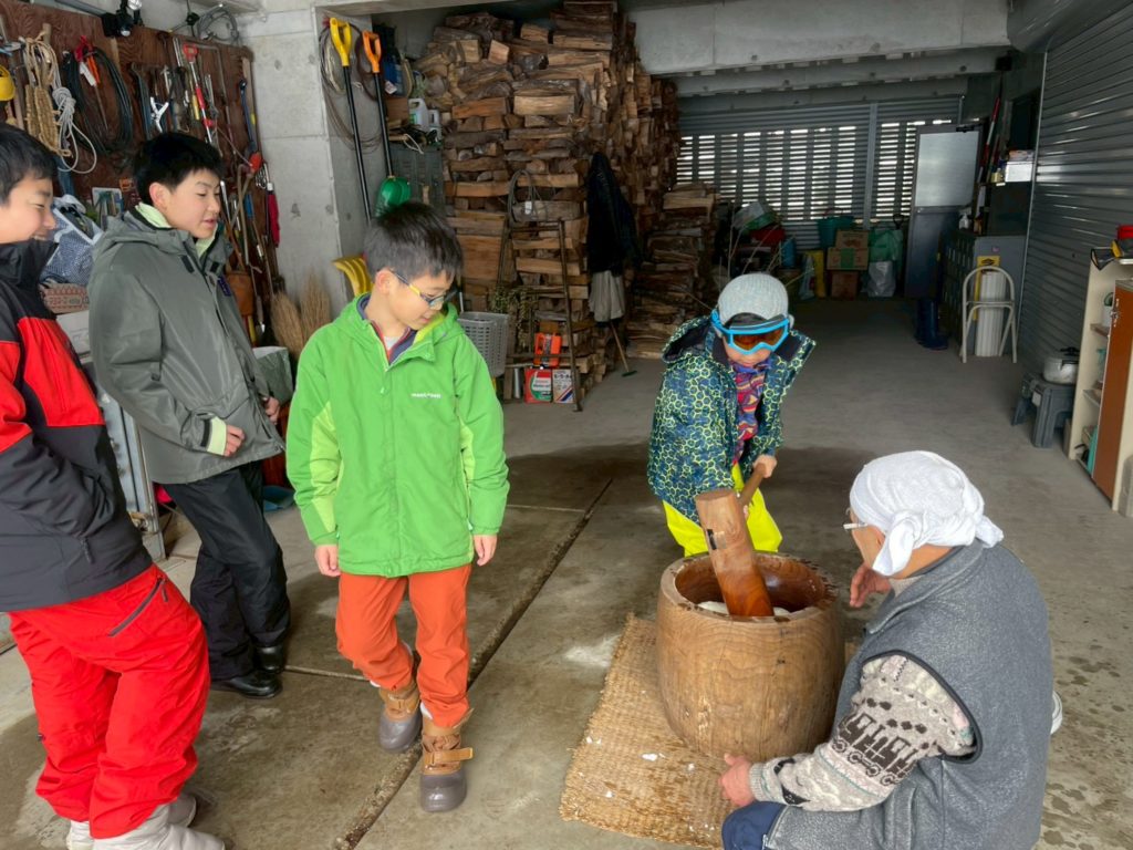 つきたての餅で、正月の縁起物「繭玉」を作りました。「食べていい?」「食べたーい!」とお願いが続き、なんだかつまみ食いの方が捗っているようでした(笑)
