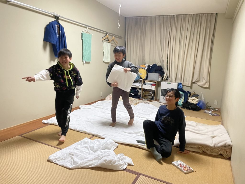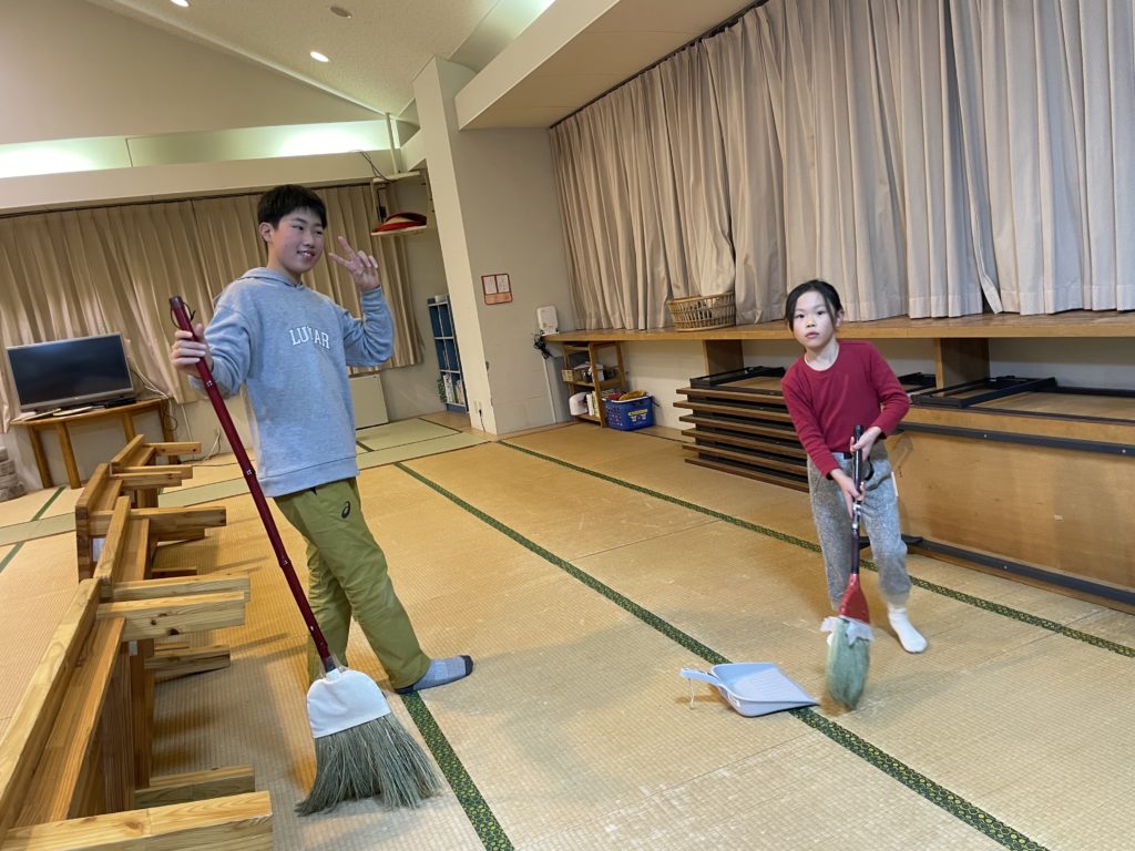 その後は掃除や布団敷きの時間。みんなで楽しみながら、手際よく動いていました。