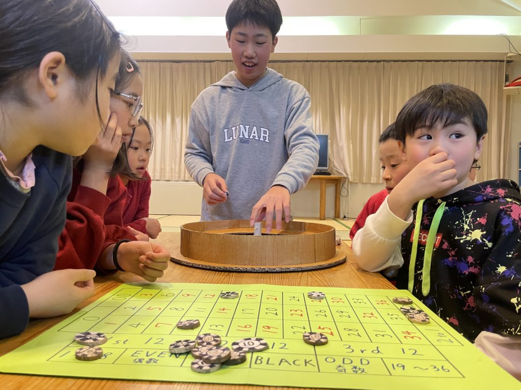 夜の自由時間では、最近留学生で流行しているカジノごっこを一緒に楽しんだり、人狼ゲームで盛り上がっています。