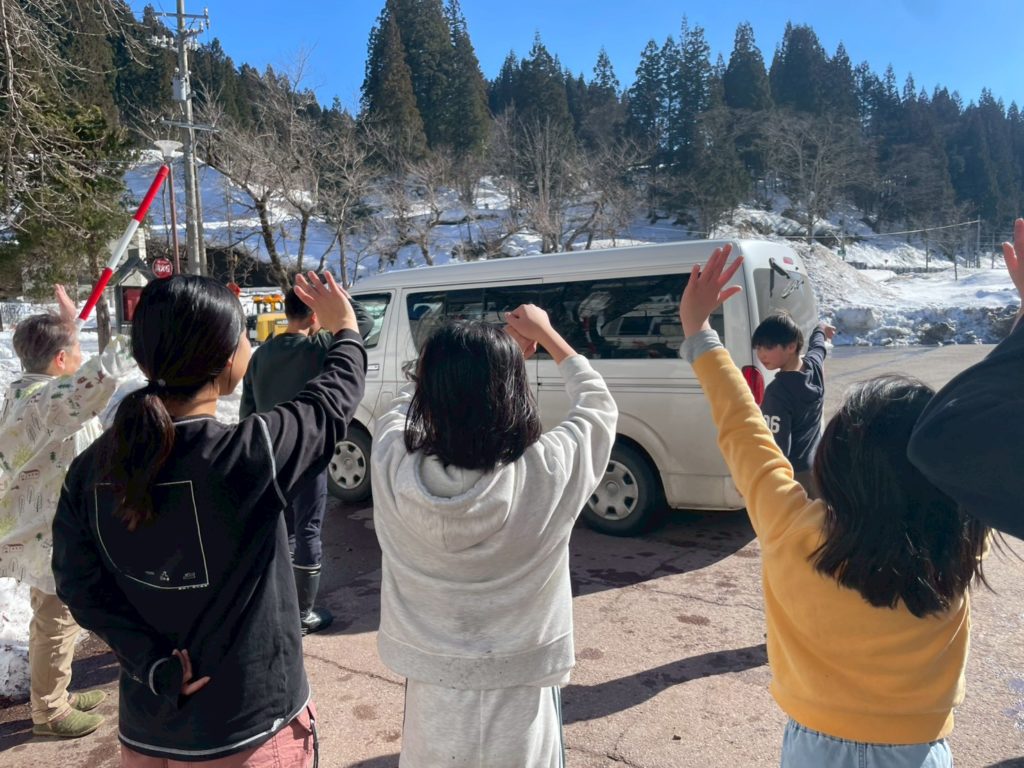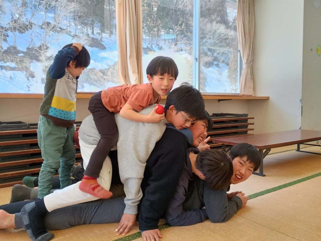 保護者とお別れをした後は、みんなで雪合戦。ふきのとうが出てきた利賀村で、まだまだ雪を楽しんでいます。