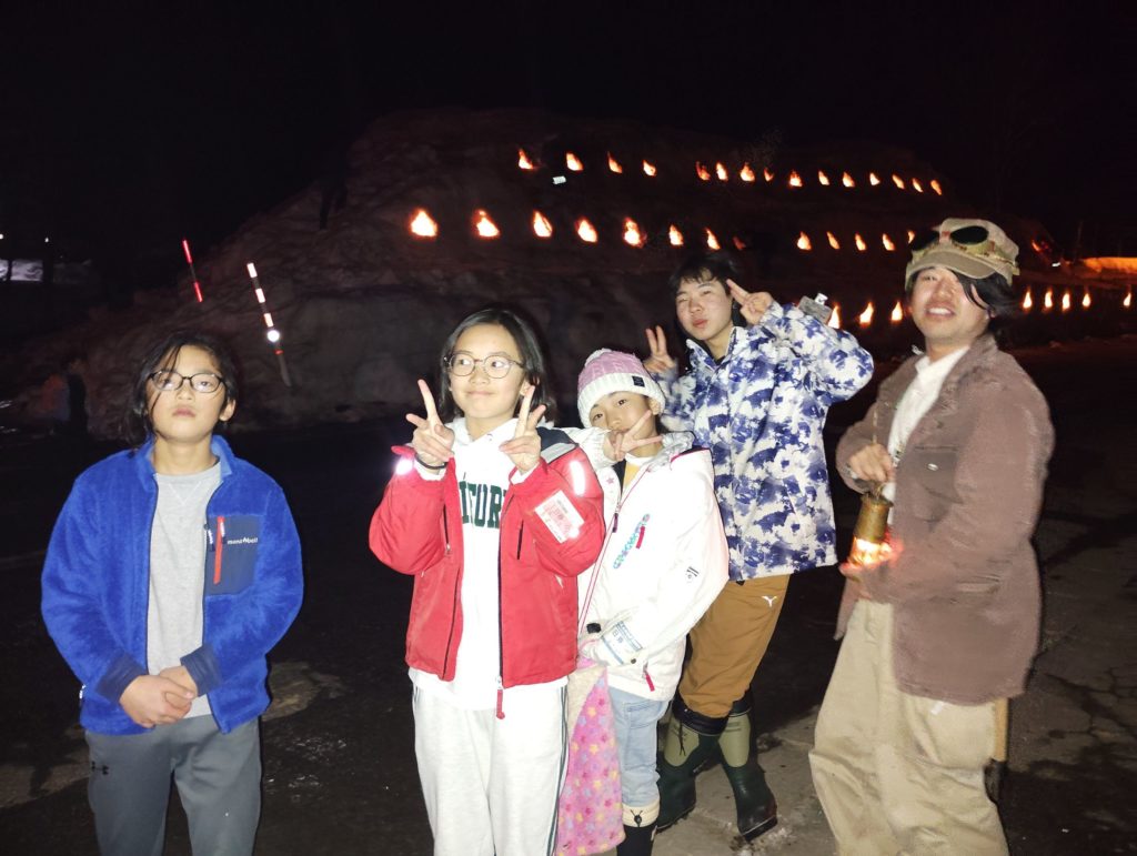 1日目は上利賀地域のキャンドルナイト・雪像づくりに参加させていただきました。ミャクミャクやオロロくんなど、様々なキャラクターを参加者の皆さんと作ります。