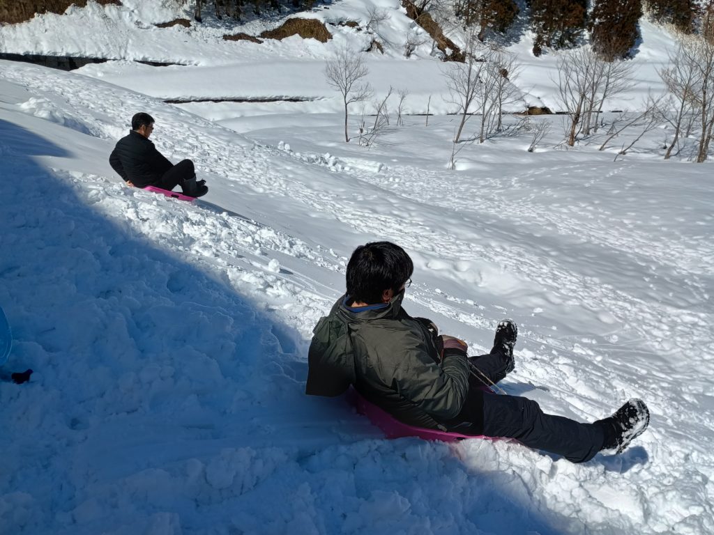 翌日午前は、親子で過ごす自由時間です。周辺を散策したり、ソリ遊びをしたり、談笑したり思い思いに過ごしました。