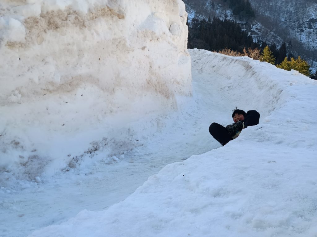 また、雪上に滑り台が登場。最後まで滑りきようと、重心の位置を工夫して楽しんでいました。