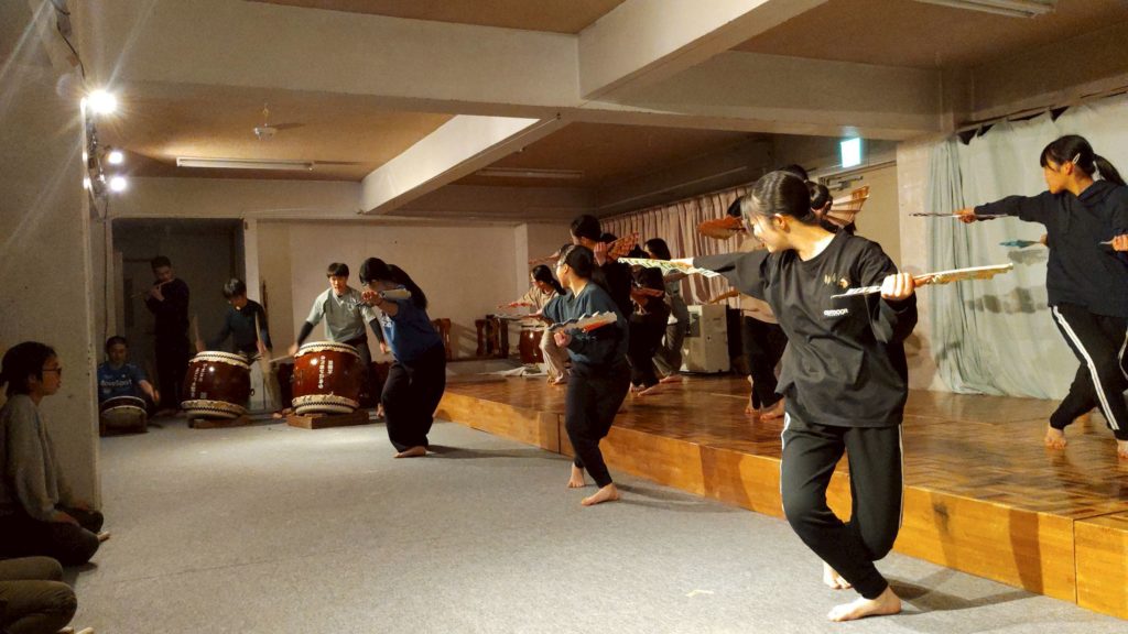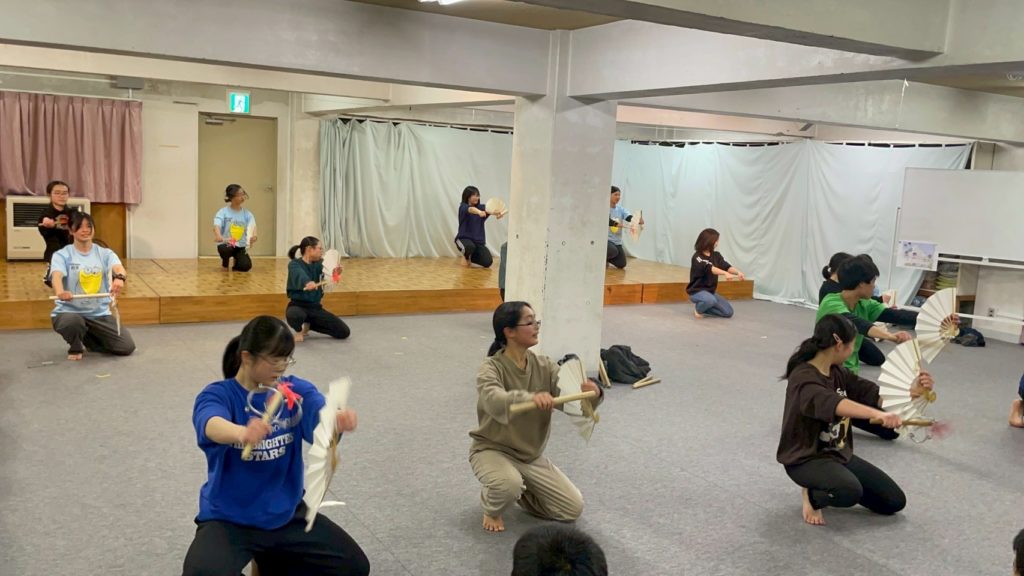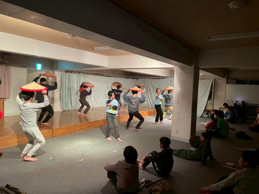 掃除と寝る準備をして、お互いが練習している演目を発表し合う交流会の時間です。
