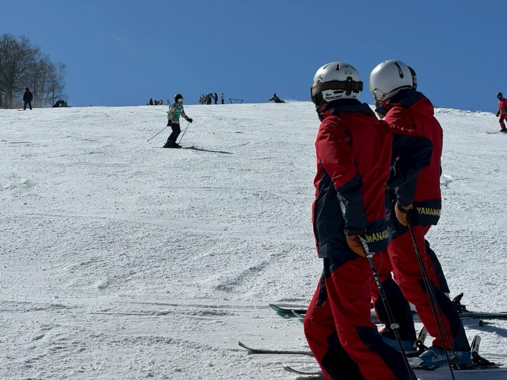 普段の活動場所よりも広く、人もたくさん!富山県とは異なる硬い雪質のゲレンデに、不慣れながらも検定に向けて練習を行いました。