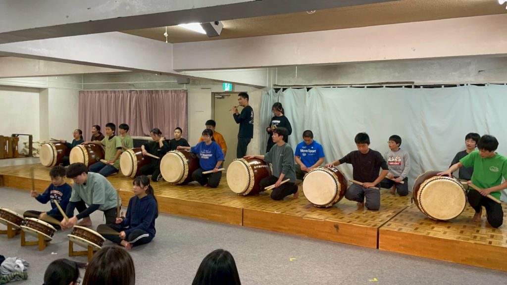 私たちは「豊年太鼓」「むぎや節」を発表しました。