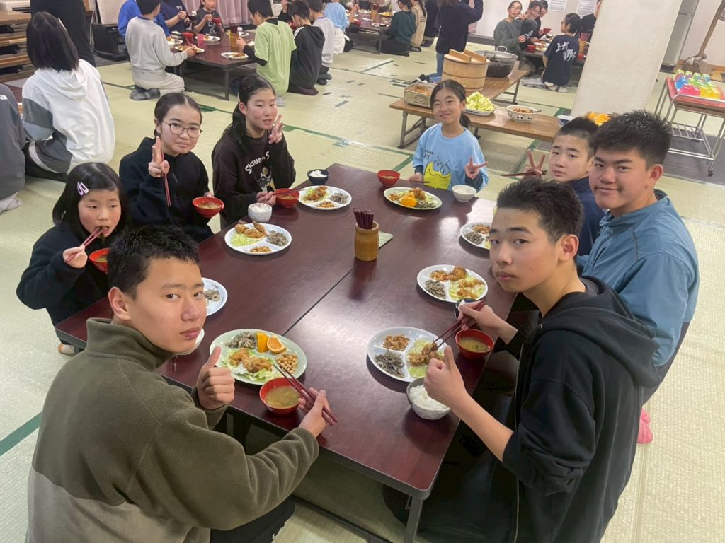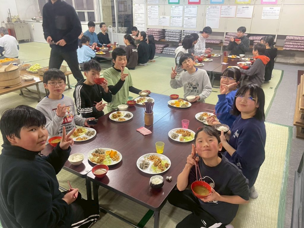 数班に分かれ、一緒に夕食をいただきました。自己紹介をしながら、いつもよりも賑やかな食事を楽しみます。