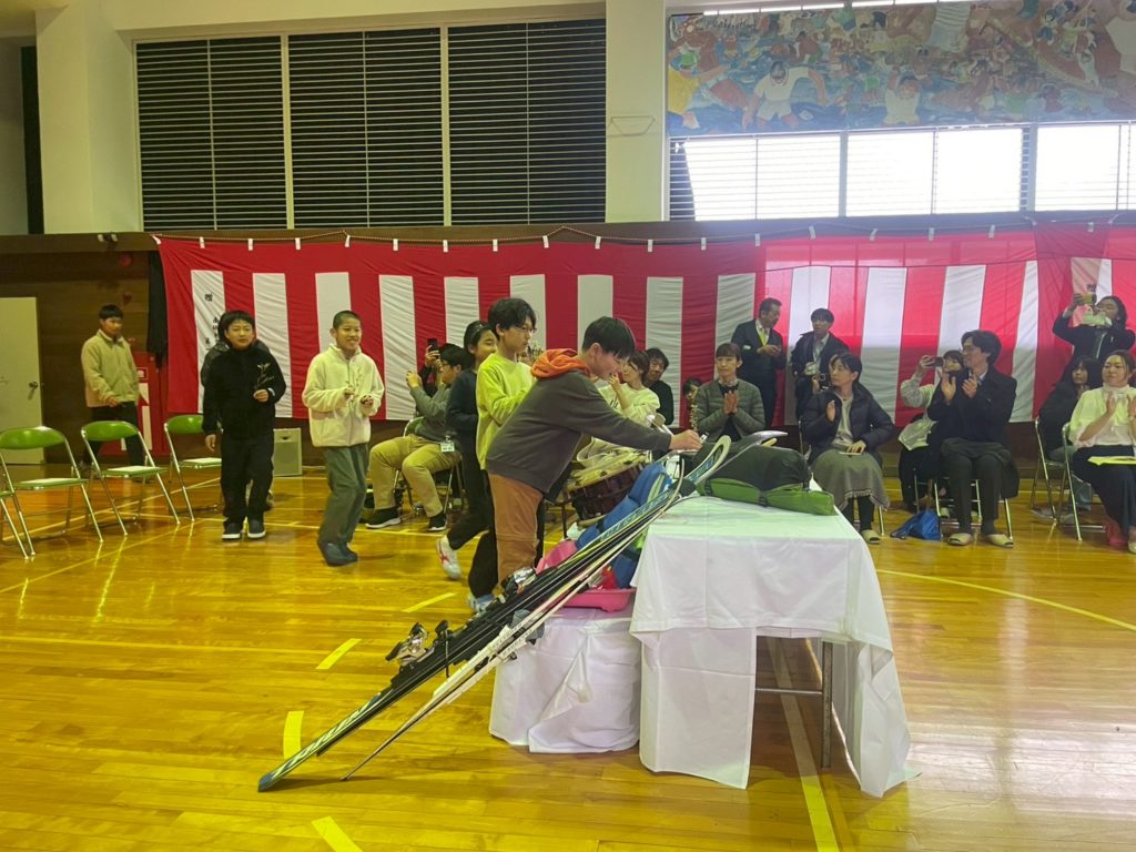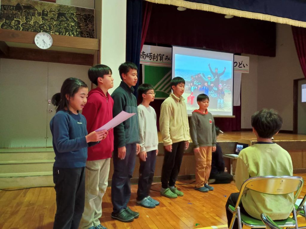 自己紹介では、自分の名前と共に「利賀の山村留学でやりたいこと」を大きな声で発表。「川遊びやスキーが楽しみです」「昨年やり残したことをやり遂げます!」「みんなを引っぱるリーダーになれるようにします」など、それぞれの思いを声に出し、来場した方々に伝えました。